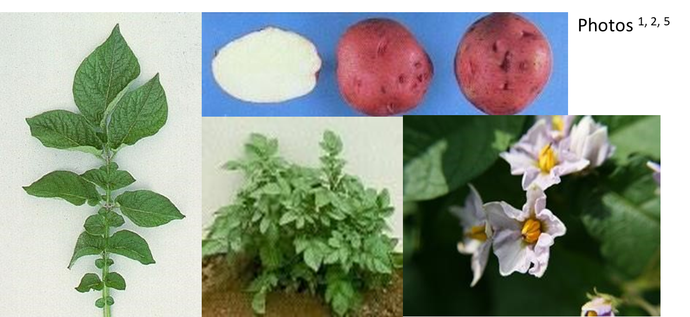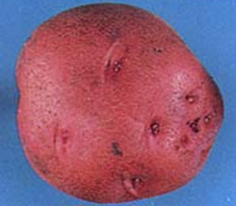 Tubers – Oblong to round with smooth to netted dark red skin and medium deep eyes; white flesh1,2,3,4; low specific gravity2; medium tuber dormancy1,2
